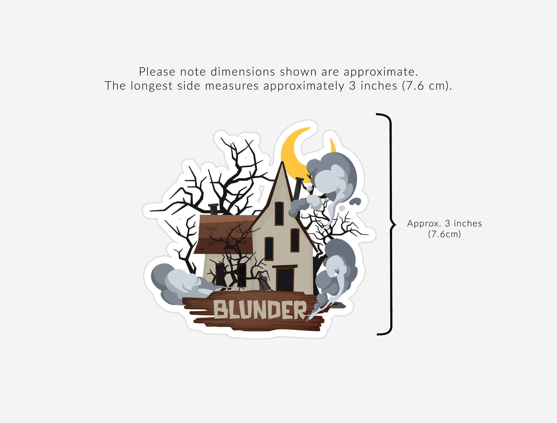 The longest side of each sticker measures approximately 3 inches (7.6 cm), though may vary by design.